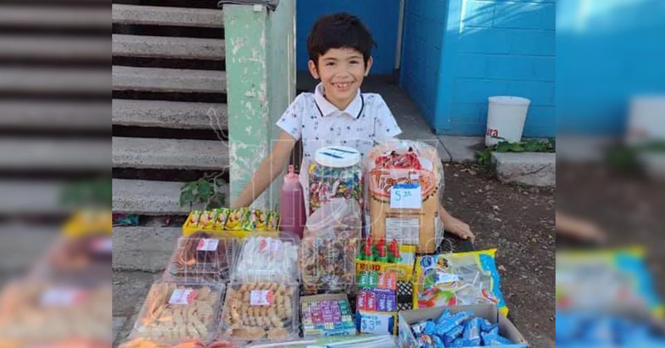 Niño vende dulces para pagar sus útiles escolares en Sonora