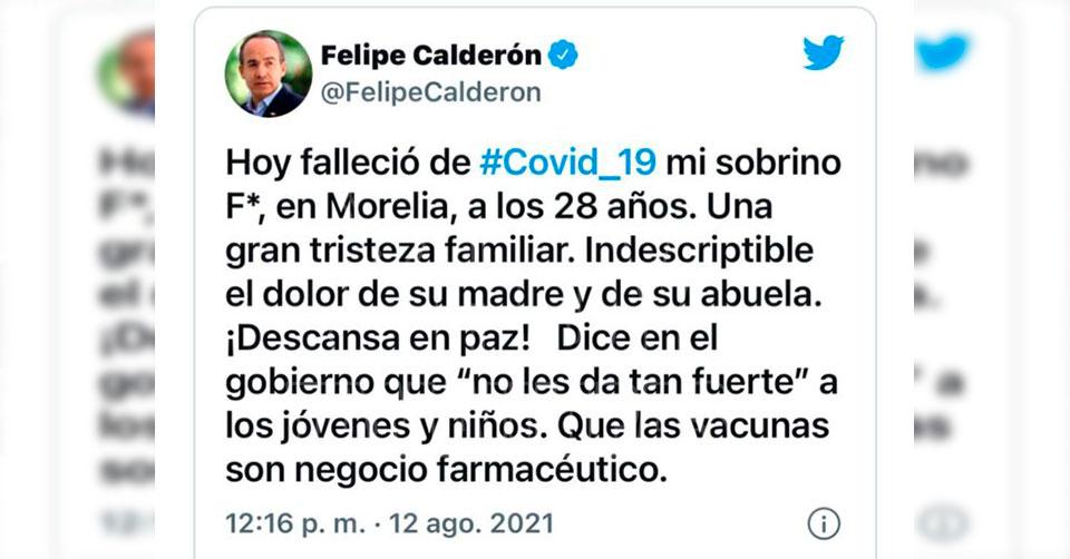 Muere por Covid-19 en Morelia, sobrino de ex presidente, Felipe Calderón