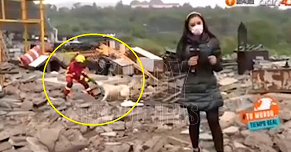 Se hacen virales perro y bombero que "pelearon" durante noticiero en vivo
