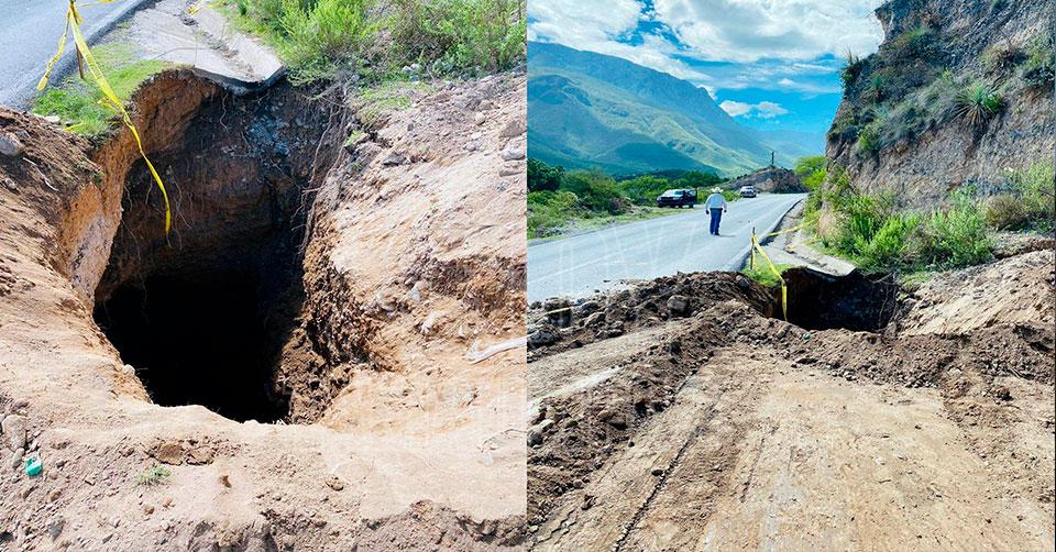 Reportan socavón en carretera Zaragoza-Aramberri, al sur de NL
