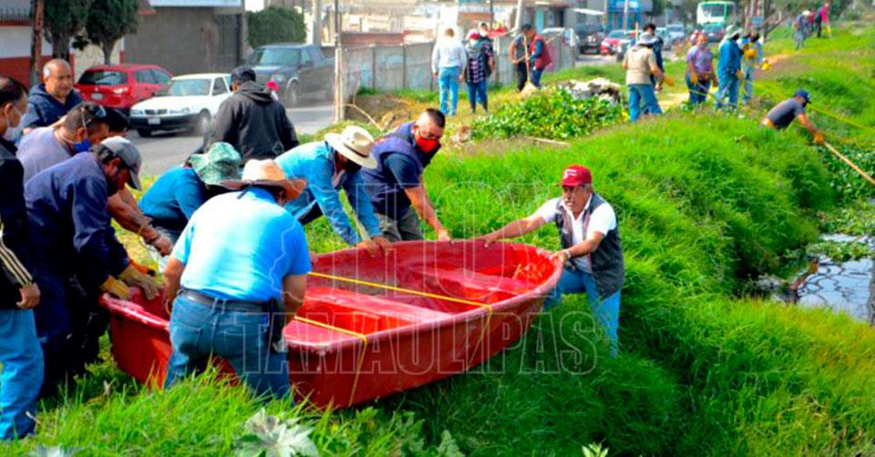Retiran lirio y basura del canal Acapol en Valle de Chalco para evitar inundaciones