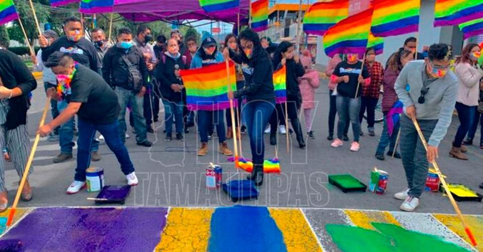 Pinta alcaldesa de Valle de Chalco pasos peatonales para promover el respeto a la diversidad sexual