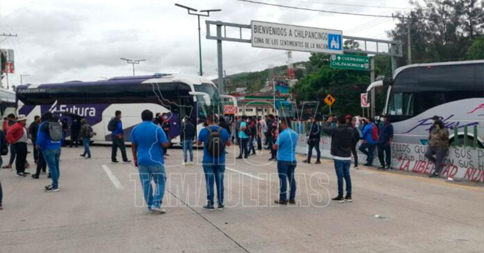 Bloquean normalistas de Ayotzinapa la Autopista del Sol