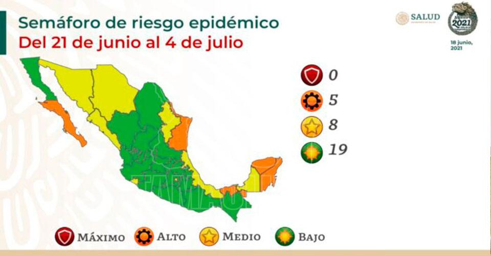 19 entidades federativas estarán en verde del Semáforo de Riesgo Epidémico
