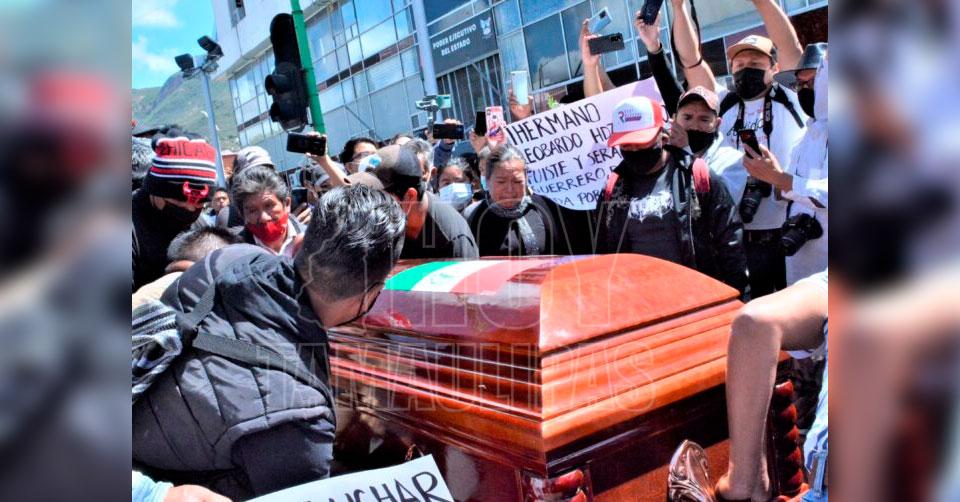 Llevan ataúd de manifestante, hasta el lugar donde fue herido