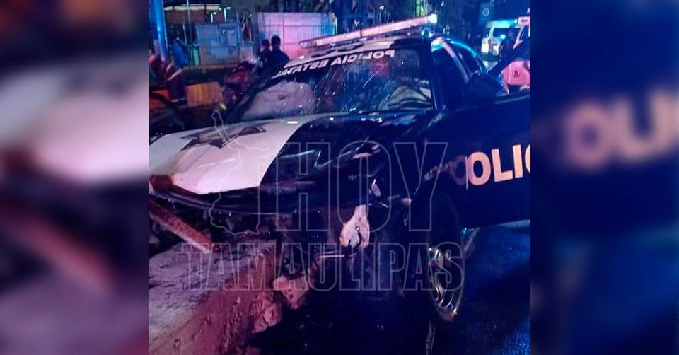 Tres policías del Edomex lesionados al chocar su patrulla en Tlalnepantla