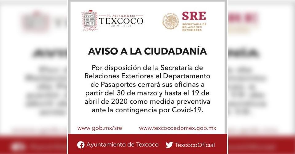 La pandemia obligo a cerrar oficina de expedición de pasaportes en Texcoco