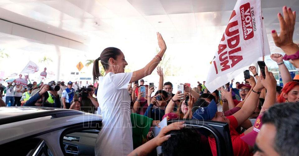Con un ambiente de fiesta y un ritual energético, reciben a Claudia Sheinbaum en Yucatán