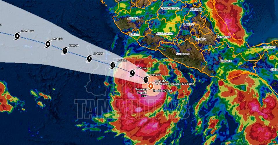 Podría Blas intensificarse a huracán categoría 1 en las próximas horas