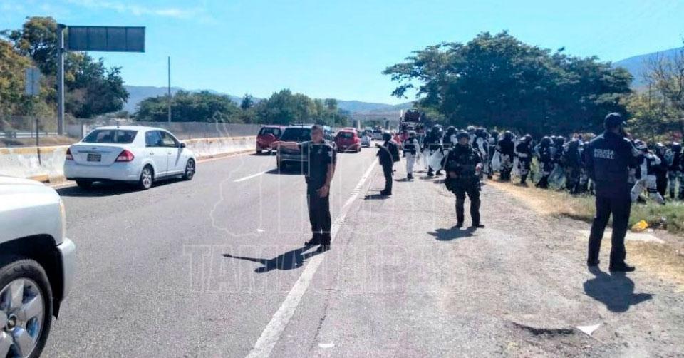 Repliega policías a colonos de un carril de la autopista del sol, en Chilpancingo