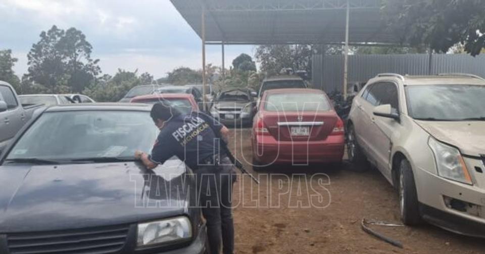 En cateo a corralón aseguran 12 vehículos con reporte de robo y armas en Michoacán