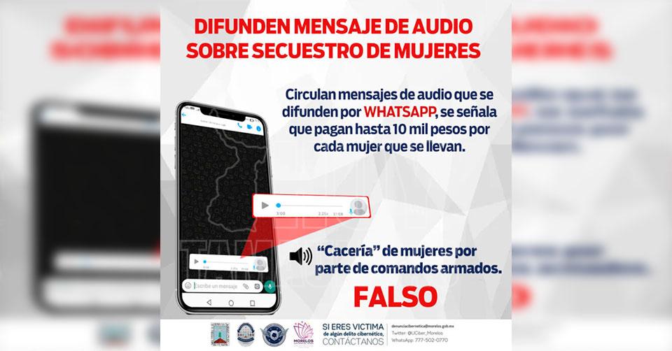 Alertan autoridades de Morelos sobre difusión de audios sobre “cacería de mujeres”