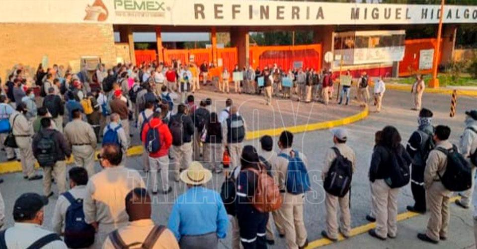 Se manifiestan trabajadores de la Refinería Miguel Hidalgo en Tula