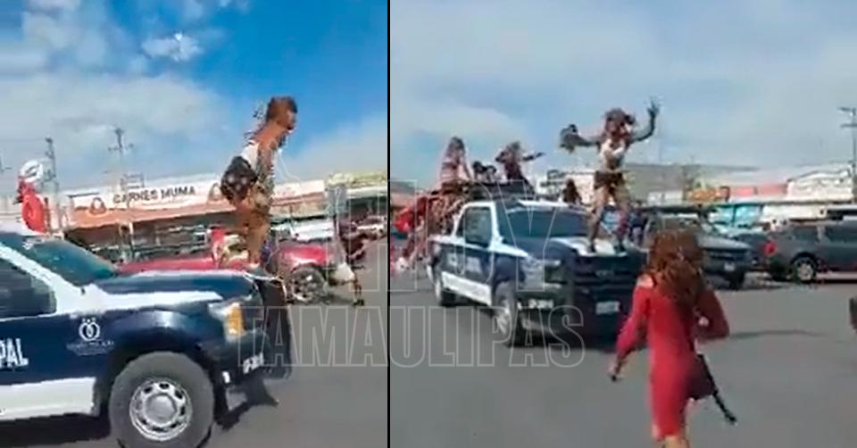 VIDEO: Vestidos como mujeres, hombres perrean sobre patrulla municipal de Durango