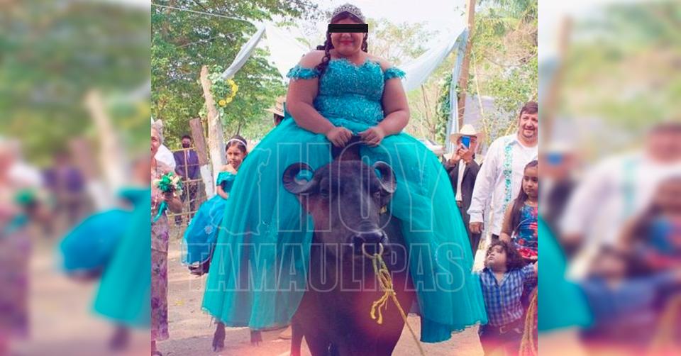 VIRAL: Quinceañera de Veracruz entró a su fiesta montada en un búfalo y desata polémica