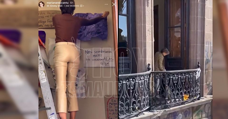 VIDEO: Mariana Rodríguez pinta Palacio de Gobierno tras marcha del 8M