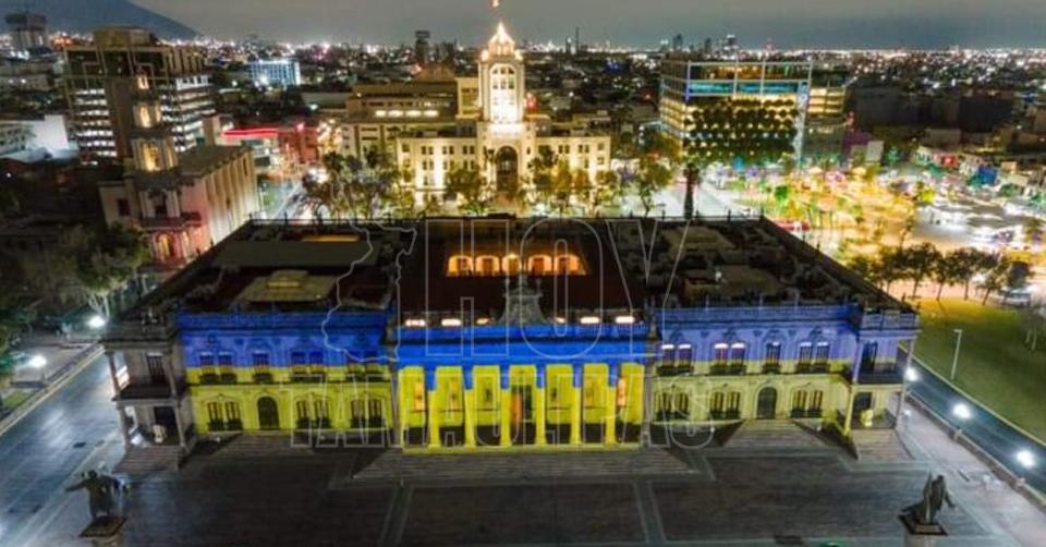 Nuevo León ilumina Palacio de Gobierno con colores de Ucrania