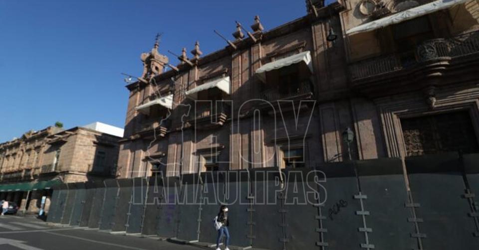 Blindan con vallas Palacio de Gobierno en Morelia para evitar pintas durante manifestaciones del 8M