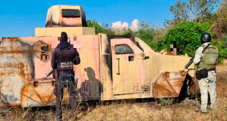 Aseguran vehículos con blindaje artesanal y narco campamento en Michoacán