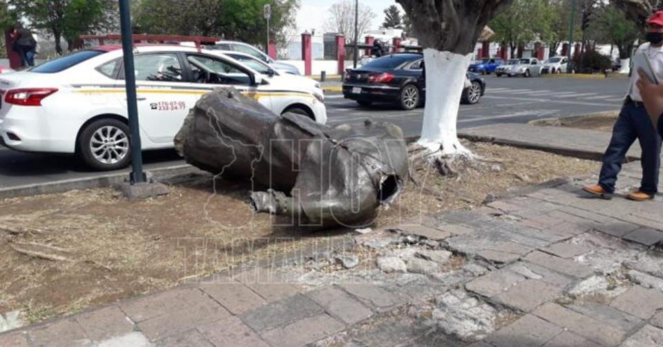 Indígenas derriban escultura en Morelia por considerarla discriminatoria; hay detenidos