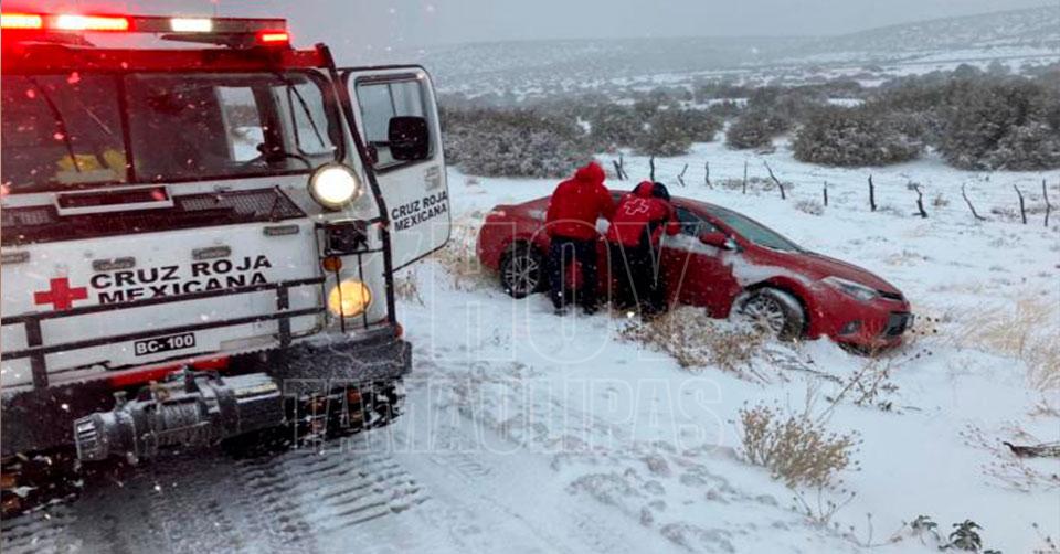 Rescata Cruz Roja más de 65 automovilistas varados en La Rumorosa por nevadas