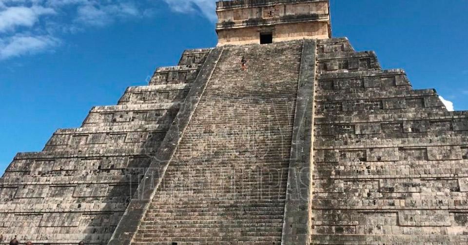 Mujer sube a pirámide en Chichen Itzá con cenizas de su esposo