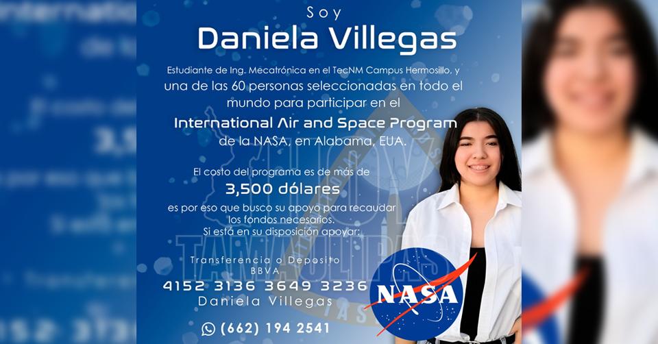 Daniela, mexicana seleccionada para ir a la NASA; pide apoyo para gastos del viaje