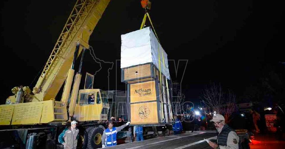 La Jirafa Benito inició el viaje de 50 horas rumbo a Africam Safari