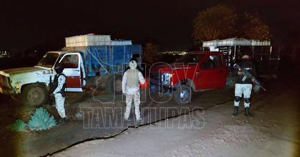 En Hidalgo, Guardia Nacional asegura vehículos cargados de contenedores para transportar aparente huachicol