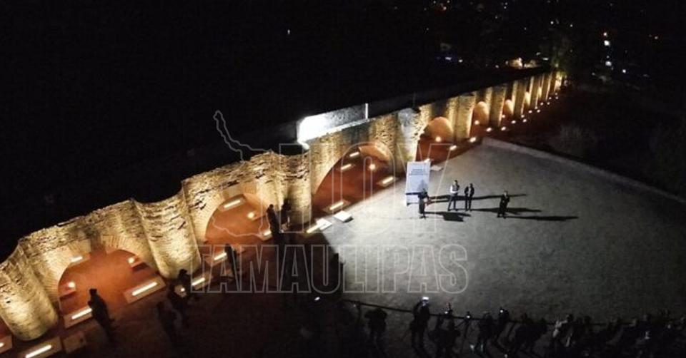 Inauguran iluminación arquitectónica del Acueducto en Tlaxcala