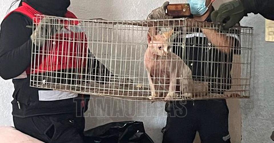 Rescatan a 28 animales en situación de abandono; entre ellos un coyote, un gato egipcio y perros pitbull