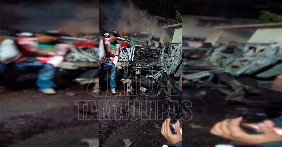 Explosión de pirotecnia deja patrulla de Nopaltepec destrozada