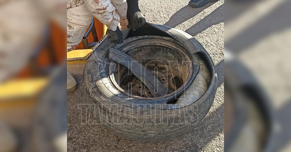 Detienen a mujer por transportar metanfetamina en llanta de refacción