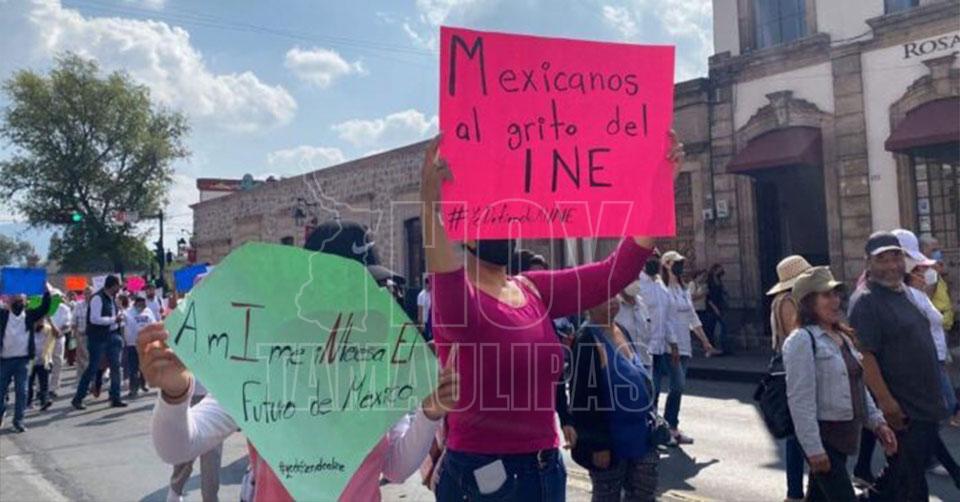 Encabeza alcalde de Morelia marcha en defensa del INE