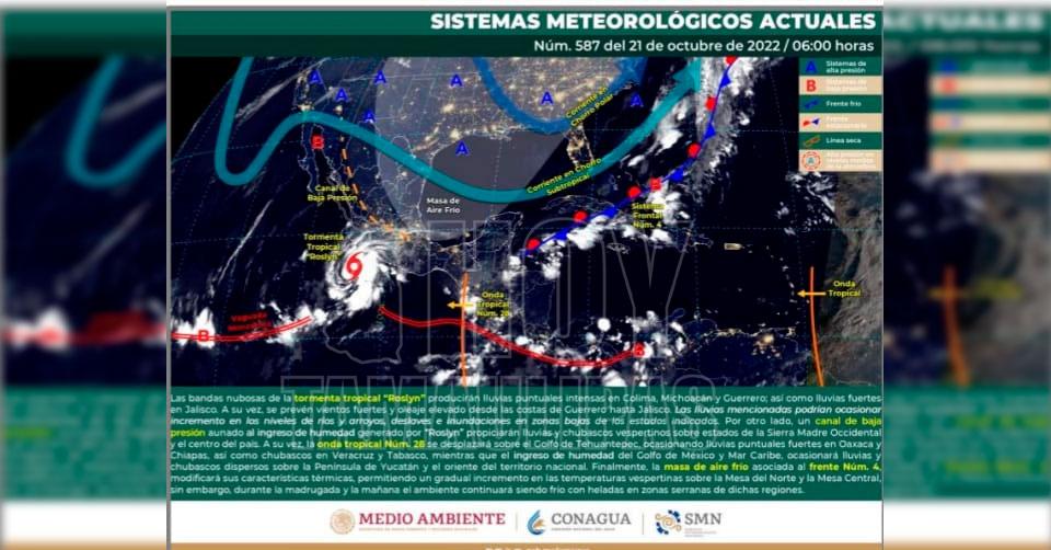 Roslyn traerá lluvias fuertes e intensas, vientos y oleaje elevado