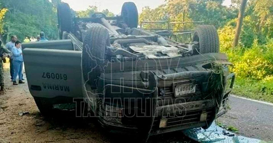Vuelca unidad de la Marina; era parte de la escolta de la gobernadora de Colima