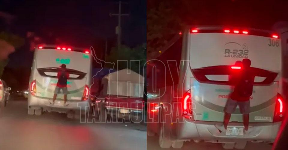 VÍDEO: Joven viaja trepado en un camión urbano en Nuevo León