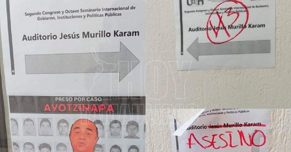 Demandan estudiantes cambiar nombre a auditorio Jesús Murillo Karam