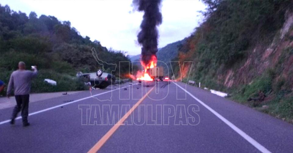 Choque entre tráiler y auto compacto cierra autopista Siglo XXI