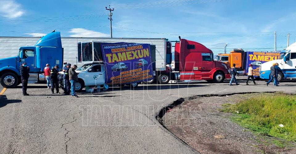 Transportistas bloquean la carretera Toluca-Atlacomulco en Toluca, exigen seguridad