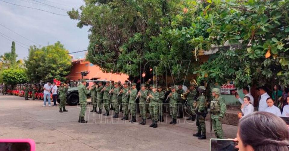 Con desfile militar y acto cívico celebran aniversario de Aguililla