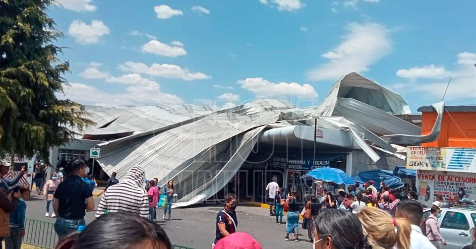 Fuerte vendaval colapso techo de terminal de autobuses de Atlacomulco