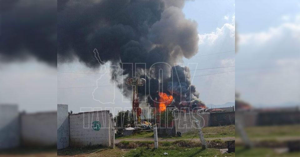 Fuerte incendio de bodega de químicos en Teoloyucan, Edomex