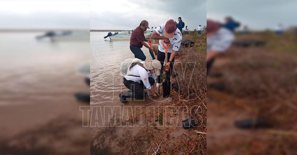 Reciben infantes útiles escolares y apoyan liberación de crías de tortugas marinas en Tamaulipas