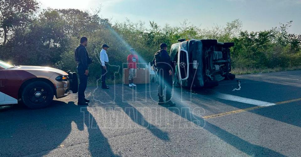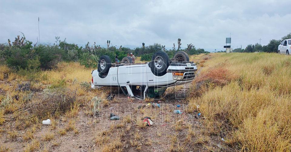 Pasajeros de vagoneta resultan ilesos tras volcadura en Aldama