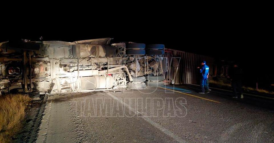 Vuelca pipa cargada con 30 mil litros de turbosina en la Tula-Victoria