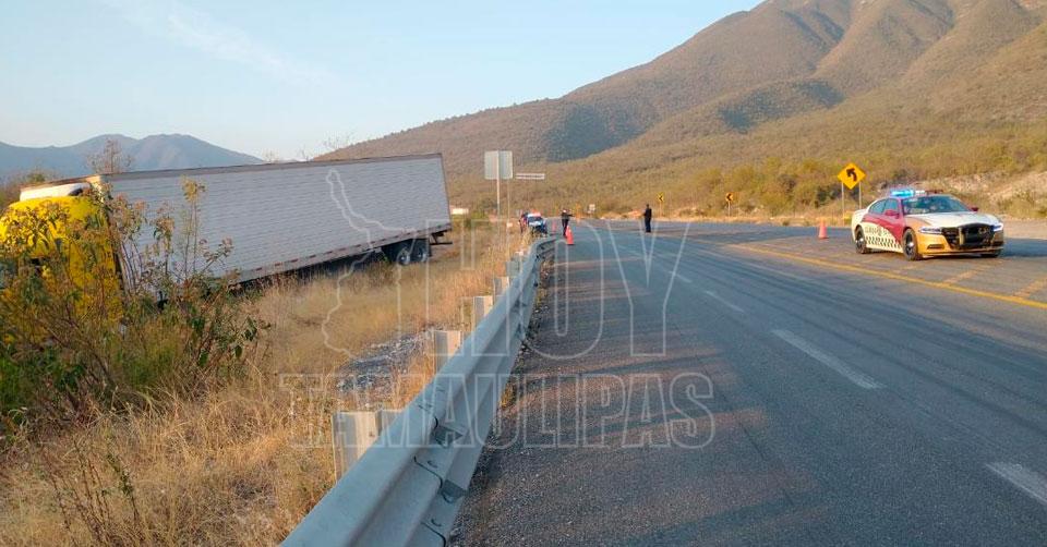 Choque de tráiler en Carretera Victoria-Monterrey obstruye circulación