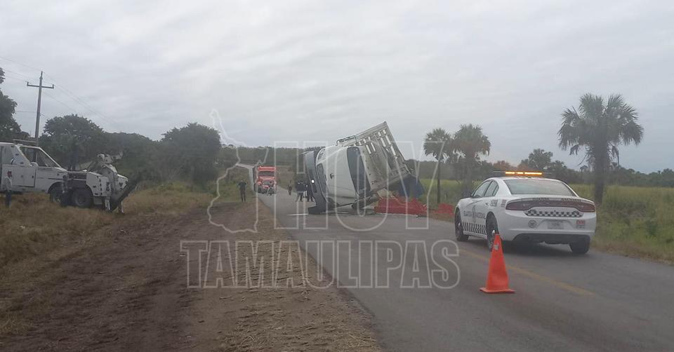 Vuelca tráiler que transportaba verdura congelada en la Tula-Victoria