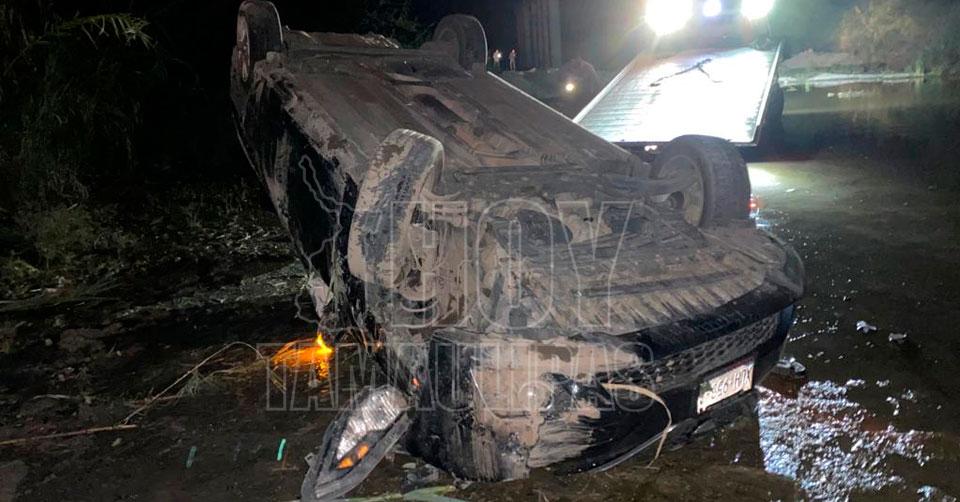 Cae con todo y automóvil desde un puente de 10 metros y sobrevive en El Mante