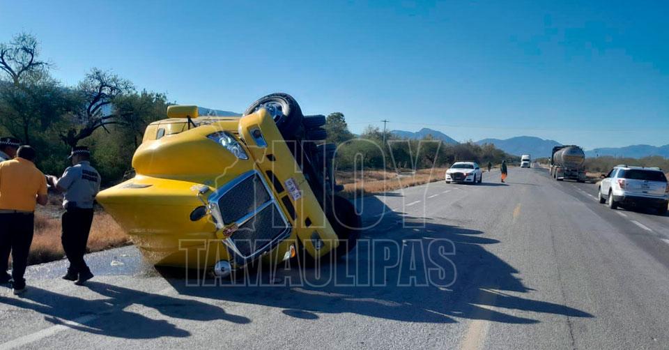Vuelca camión en la carretera Victoria- Monterrey